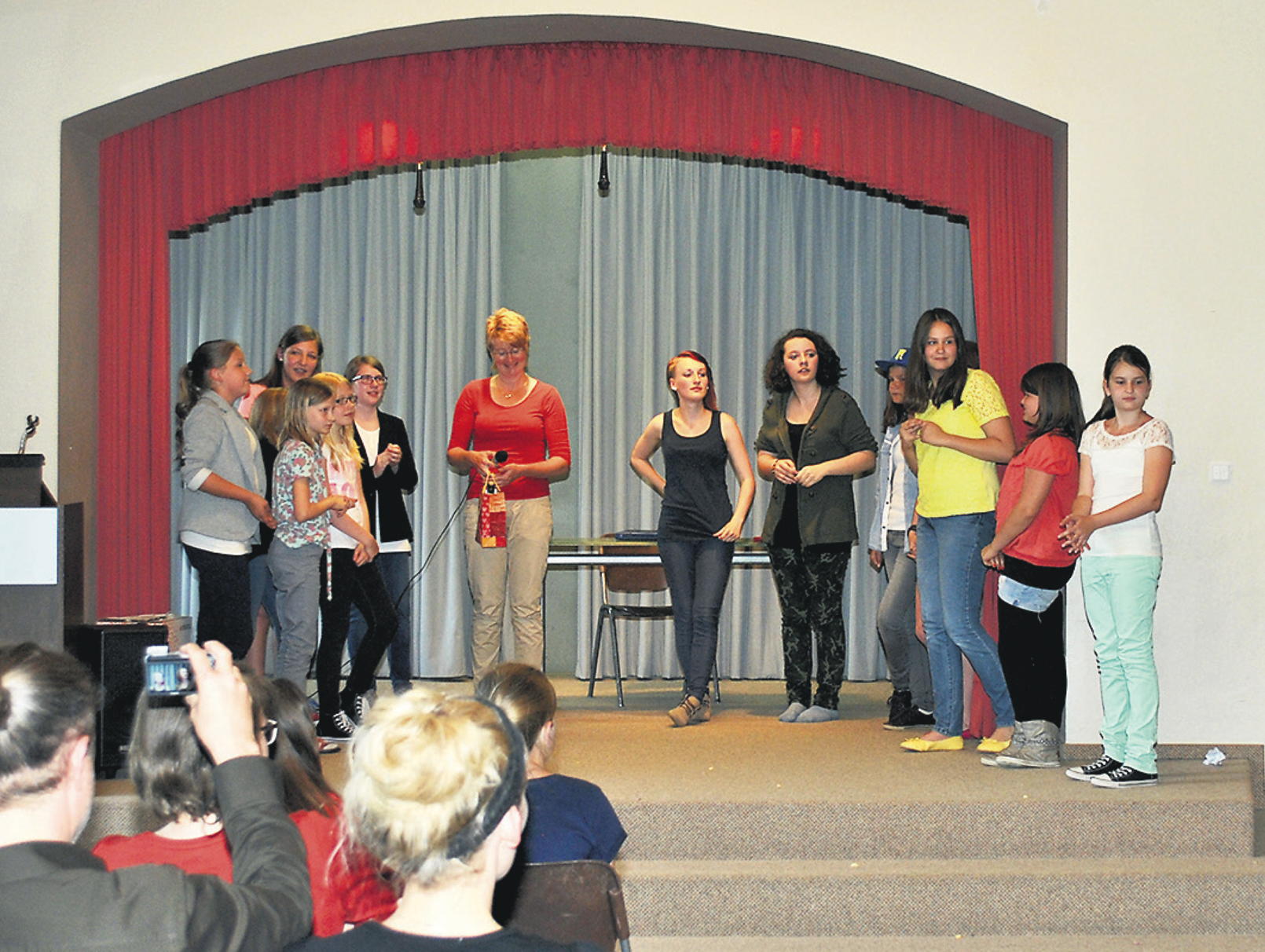 13 junge Schülerinnen haben sich in der Theater-AG des Eichsfeld-Gymnasiums (EGD) als „1. FC Theater“ zusammengefunden und unter Anleitung der Theater-Pädagogin Gerdi Fricke ein Jugendstück selbst entwickelt.